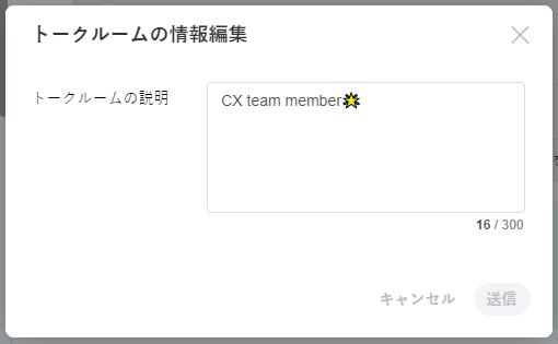 トピックに各トピックの説明文が書き込めるのと同様、グループチャットにも説明文を表示させる機能が追加されました。 同じメンバーでいくつものグループチャットが作成されている場合、トークルームを間違えたりしないようにチャットルームの説明文機能を利用して、それぞれのトークルームを区別することができます。