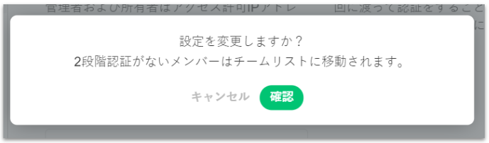 2段階認証の設定がONの場合、未認証のメンバーはチームリストに自動的に移動されます。未認証のメンバーは2段階認証を設定後にチームへアクセスできますので、ご注意ください!