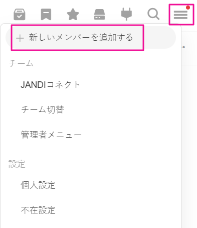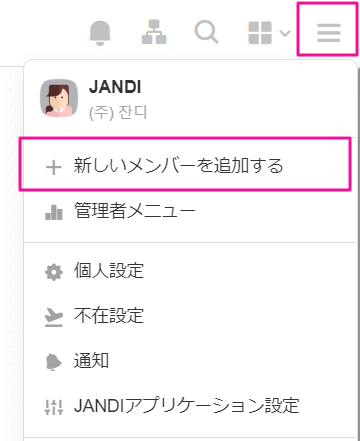 1.JANDIのPC/Web画面の左上にある[≡]ー[新しいメンバーを追加する]ボタンをクリックします。