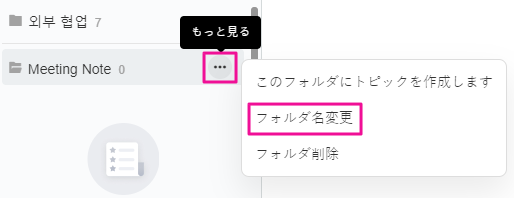 3.フォルダー名の横の [...] もっと見るを選択し、フォルダー名を変更、削除ができます。