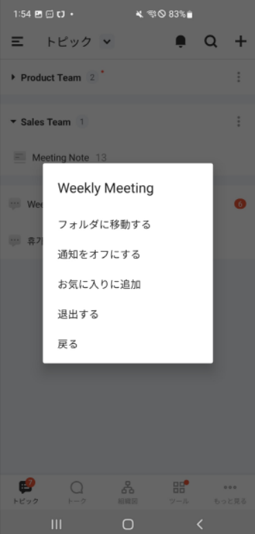 フォルダ内トピック及びフォルダ順番も変更できます。