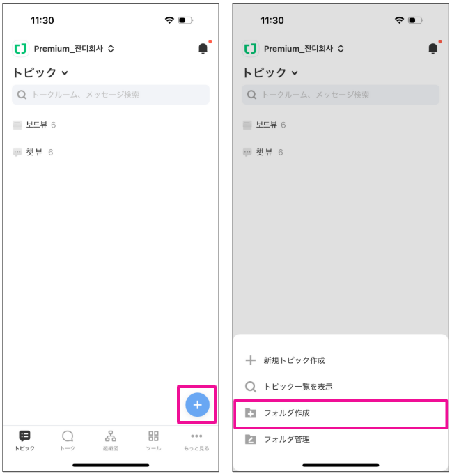 ✔️色んなトピックに参加しているなら'トピックフォルダ'を作成し私だけの整えられたJANDI業務環境を作って見ましょう。トピックフォルダは個人別の設定で、PC/WebとMobileにリアルタイムで適用されます。 ✔️ トピックフォルダはどう作成しますか? フォルダ同士の順番変更もできますか?