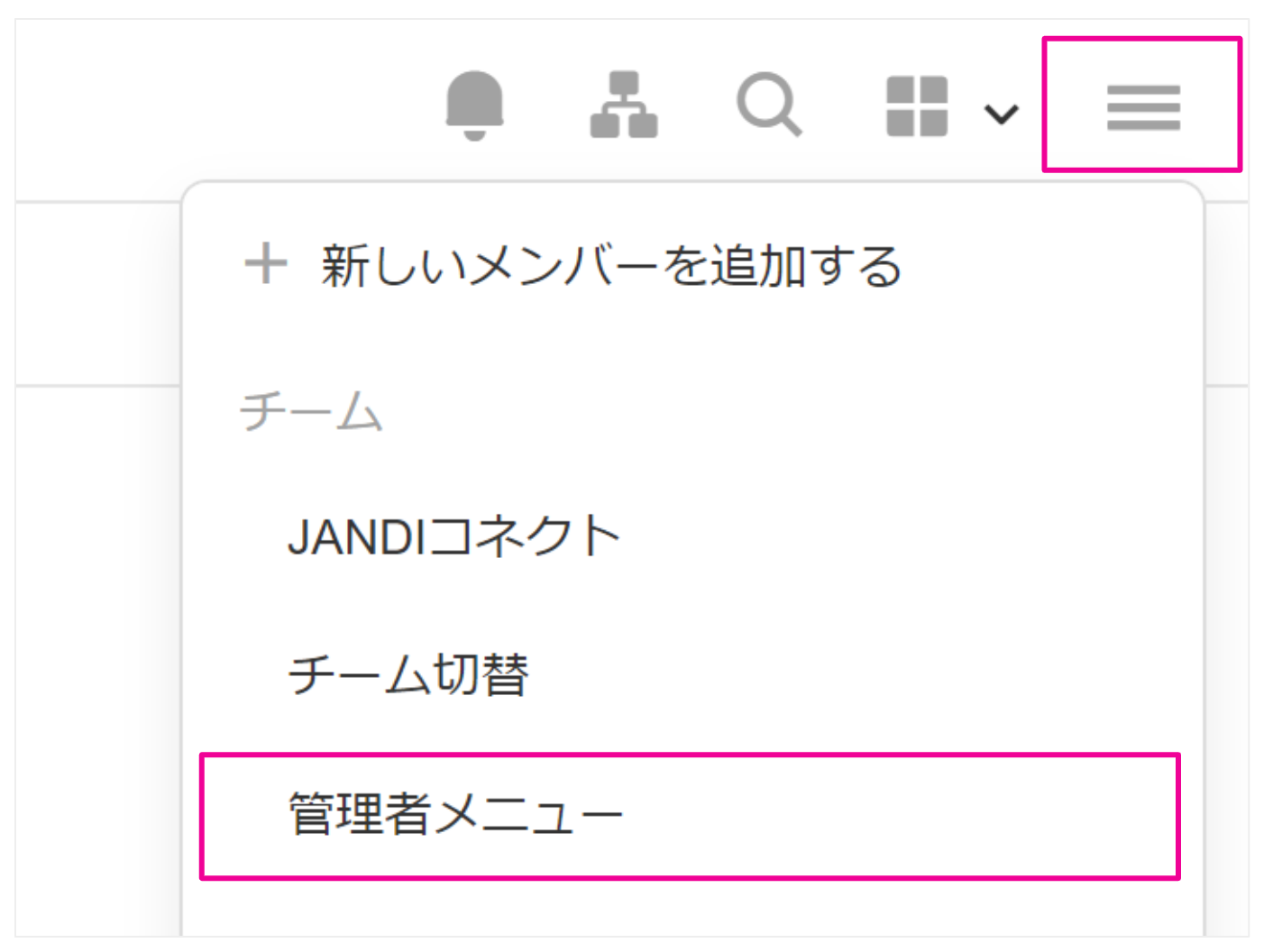 1.右上の[≡] > [管理者メニュー]を選択します。