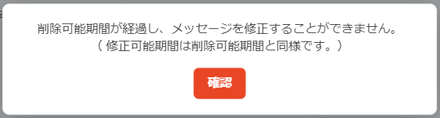 3. 削除可能な時間以降、メッセージを削除する場合、以下のようなメッセージが表示され削除が制限されます。
