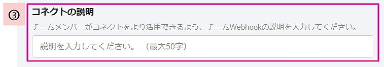 ③コネクト説明:コネクトに関する説明を入力し、チームメンバーがより活用できるようにサポートできます。