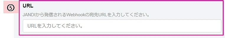 ⑤URL:JANDIで送信されるチーム用Webhookを受信するURLを入力してください。