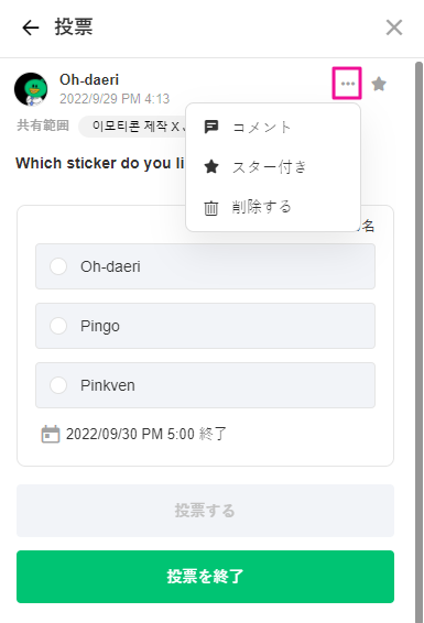 投票締め切り:完了した投票の場合投票終了時間前に締め切ることができます。