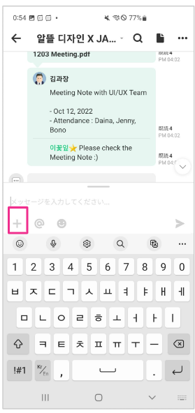 <モバイル> 1. JANDI入力ウィンドウ(+)ボタンをクリックしてください。