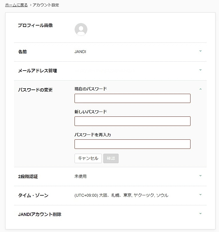 アカウントのパスワードを変更すると、現在接続している機器以外、他の機器を自動的にログアウトすることができます。 パスワードは、[≡] - [ホームに戻る] - [プロフィールの設定] - [パスワードの更新]で変更ができます。