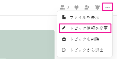 *チームメンバー全員が最初から自動で参加してほしいトピックは自動招待を設定してください。 <PC/Web> ⒈トピック右上もっと見る[✓]ー[トピック情報を変更]ボタンをクリックします。(トピック管理者のみできます。)