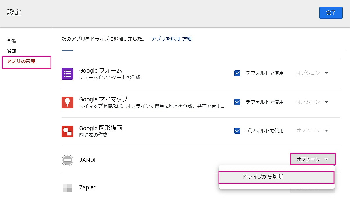 4.JANDIとグーグルドライブの連携が解除されました。変更したいアカウントをJANDIに新しく連携させてください。