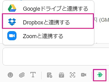 <ドロップボックス> ⒈JANDI[ファイルアップロード]ボタンで[ドロップボックス]をクリックします。