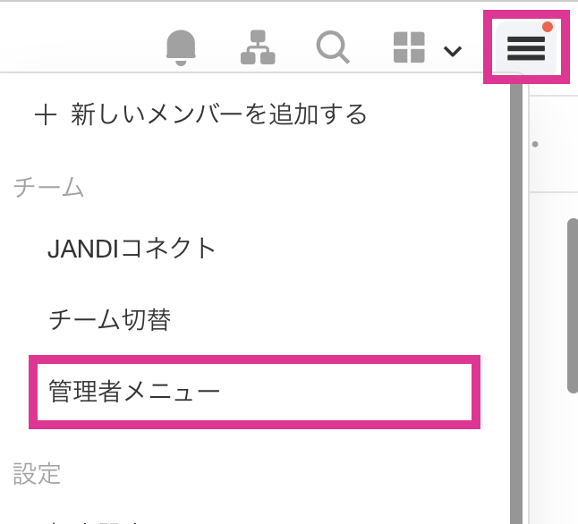 1. 右上上段の [=] > [管理者メニュー] を選択してください。