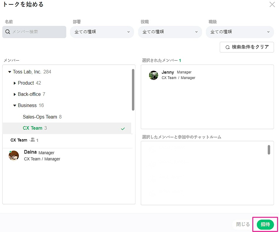✔️準メンバーは自らチャットを開始できません。正メンバーにトークルームへの招待をご依頼ください。