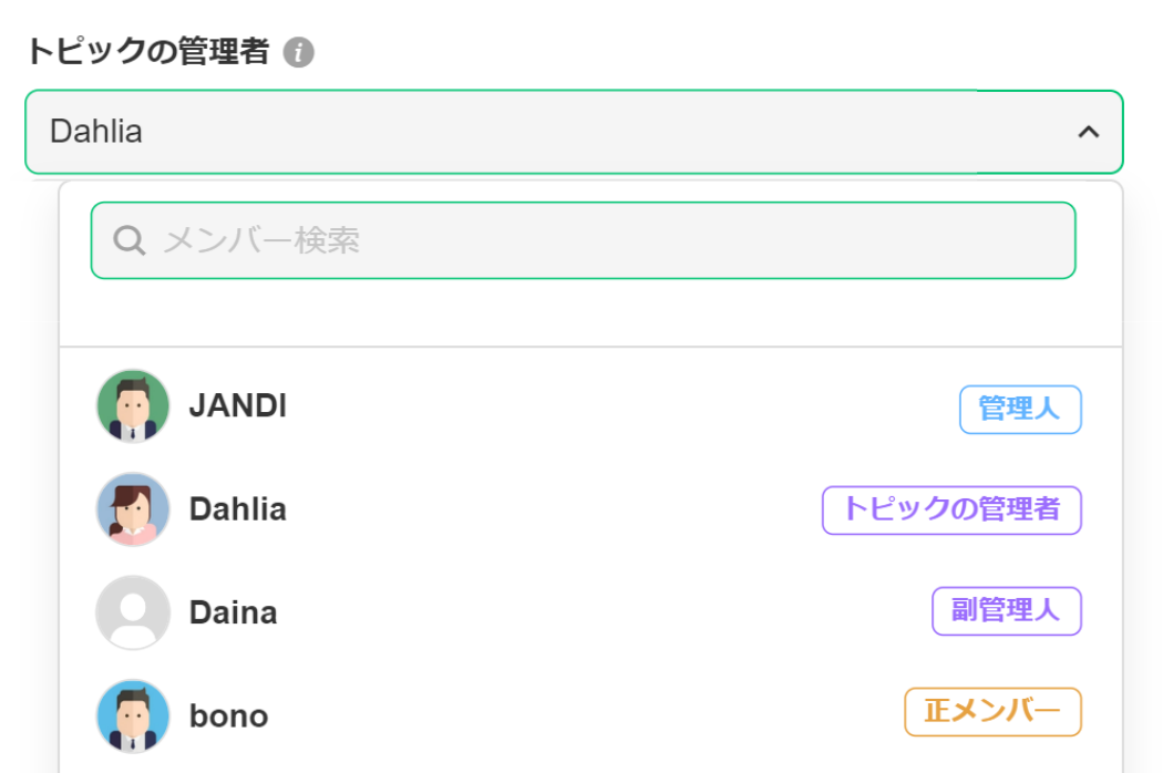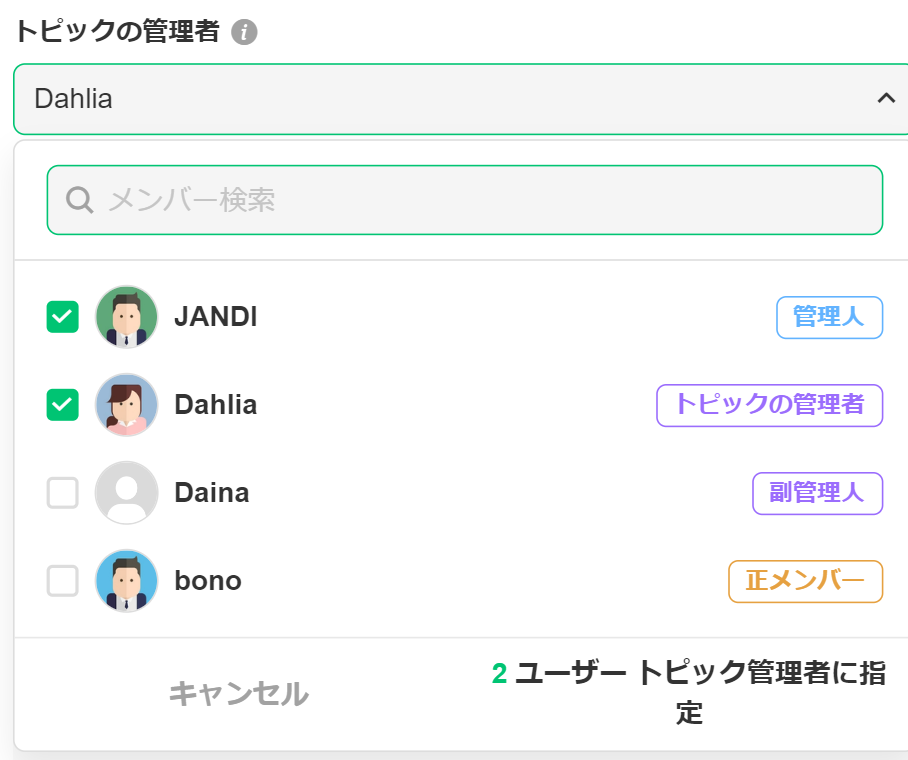 正メンバー以上の複数のメンバーをトピック管理者に指定できるように改善されました。