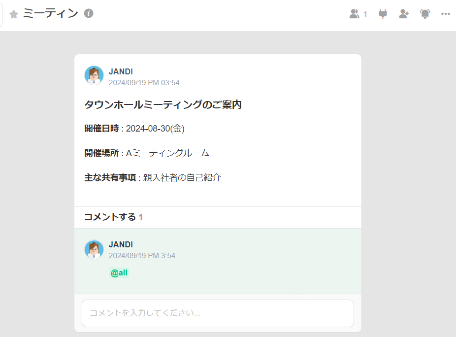 投稿(Post)を固定して確認できるチャットルームです。