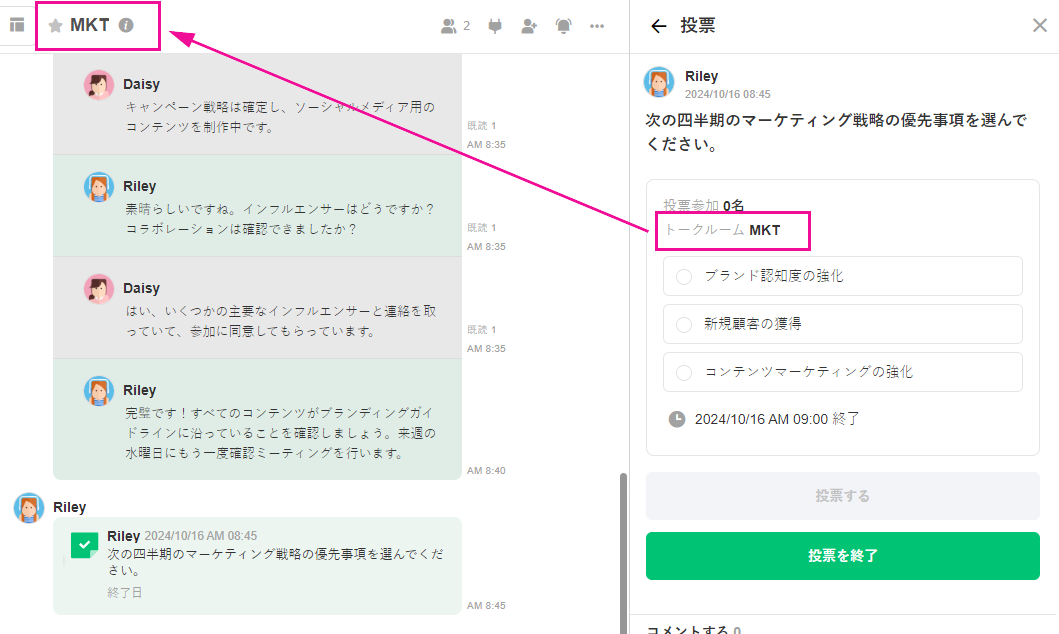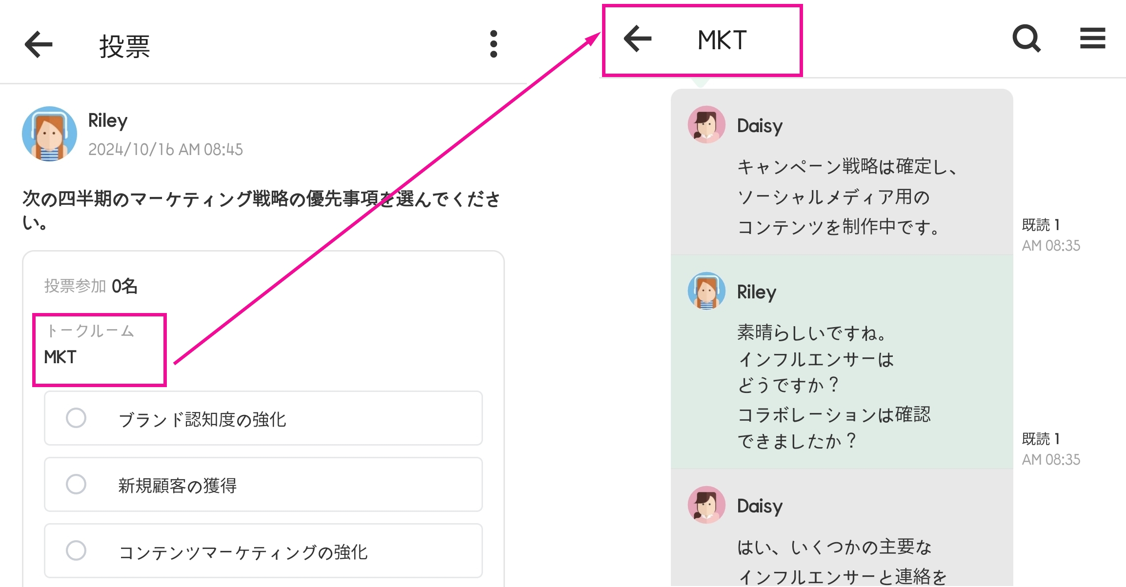 メッセージ、投票、タスクの詳細ビューからトークルームに移動する機能が追加されました。