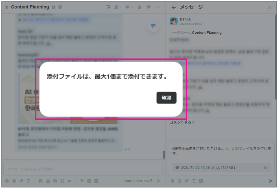 既存でコメント添付ファイル個数が1個に制限されていたので、メッセージを複数回に分けてファイルを共有したことがあったと思います...😭。