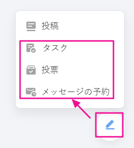 右下の [作成] アイコンをクリックすることで、以下の新しい機能をすべてご利用いただけます。