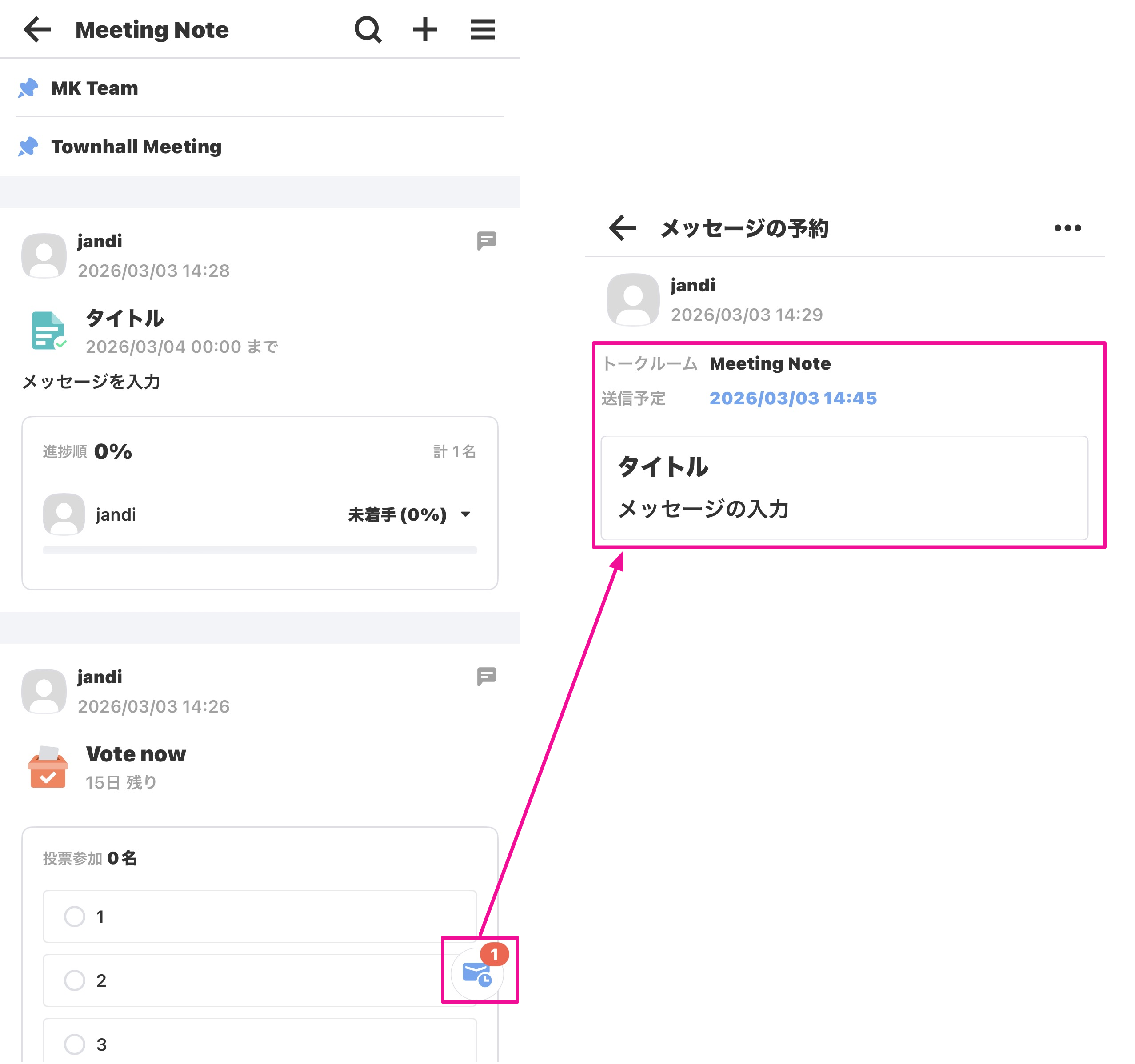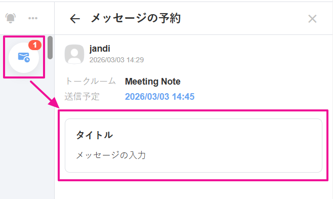 右上のアイコンをクリックすることで、[メッセージの予約送信] の詳細を確認できます。