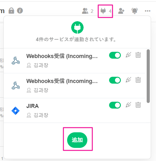 <ジラ連携方法> ⒈PC/Web画面左上[☰]ー[JANDIコネクト]メニューをクリックしたり、トピックウィンドウ右上プラグ型の[JANDIコネクト]ボタンをクリックします。