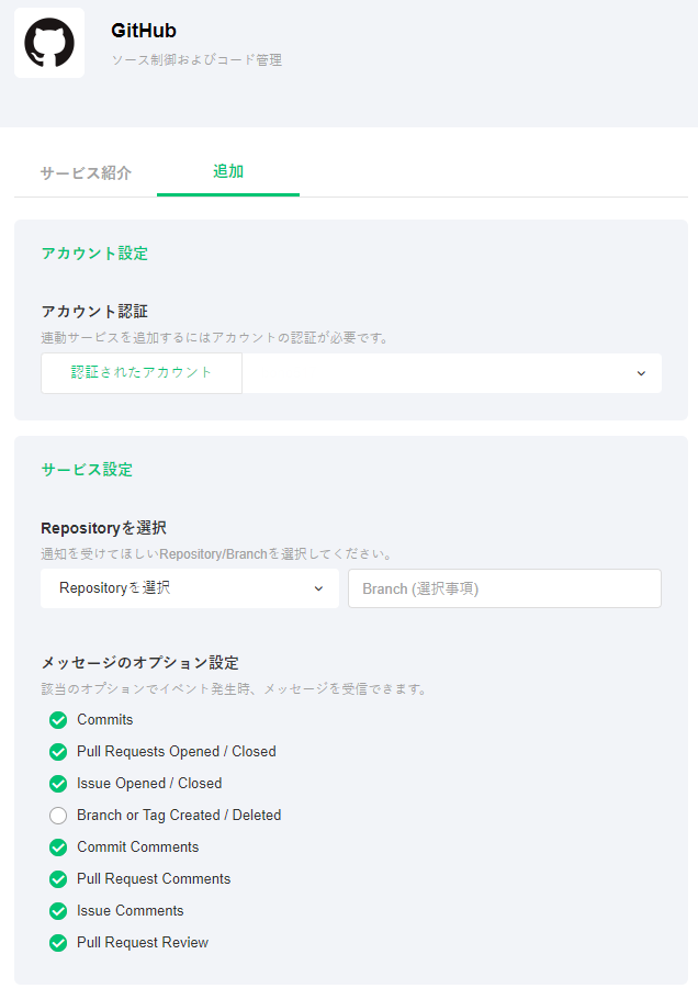 3.‘GitHubアカウント認証する’を選択し、連携させるGitHubアカウントでログインします。認証ウィンドウで‘許可’を選択してください。