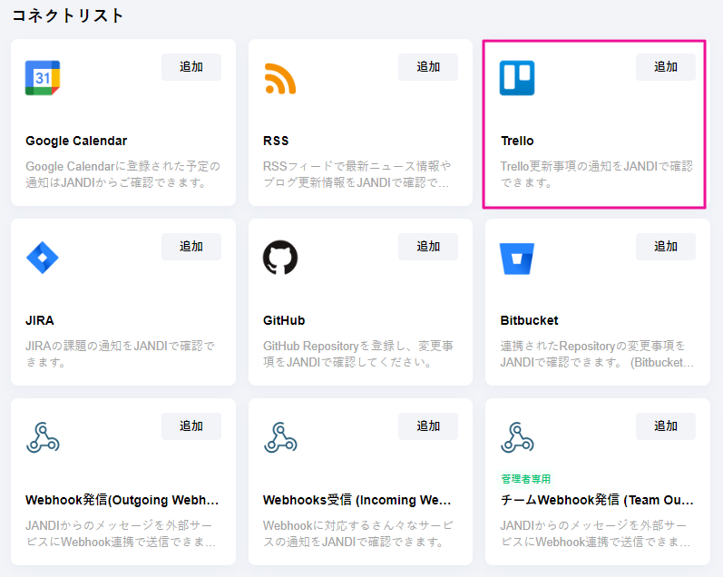 *JANDIコネクトでトレロ(Trello)を連携させて、効率的にプロジェクトを管理できます。 <トレロ連携方法>
