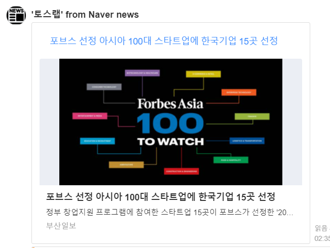 ご参考!上にご紹介したグーグルアラートRSSの場合、設定以後のインターネット上でのグーグル検索結果がないとどんな内容も発生されません。長い間どんなアラートも発生しない場合、グーグルアラートWebサイトで該当キーワードについての最近検索結果を確認できます。 3.ご参考事項 JANDIのRSS受信は1時間周期で作動します。そのため非常に多くのアップデートがある新聞社の総合部分RSSを連携させる場合一瞬に多すぎるJANDI通知をもらうことがあります。同じ新聞社でも特定カテゴリーのRSSをセクション別に購読することをお勧めいたします。