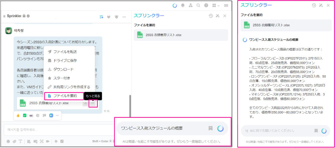 スプリンクラー「メッセージ要約」、「ファイル要約」機能はいつ使用しますか?