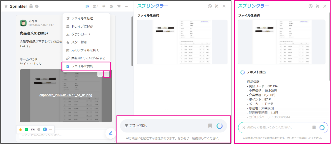 長文のメッセージおよびファイルの要約整理は、スプリンクラーにお尋ねください!