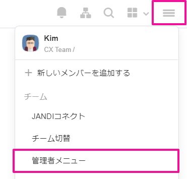 1. 右上の[=] > [管理者メニュー]を選択してください。