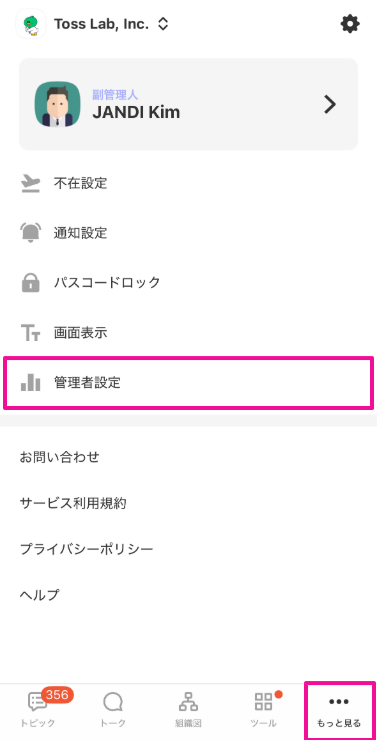 1. アプリ右下の[...]もっと見る > [管理者設定]