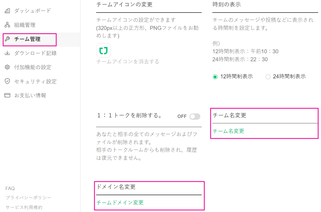 チームドメインは何ですか?変更できますか? (チーム名変更、チーム削除方法含め)