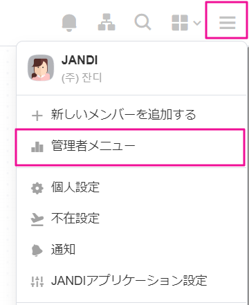 1. 右上上段の [=] > [管理者メニュー] を選択してください。