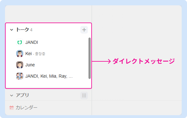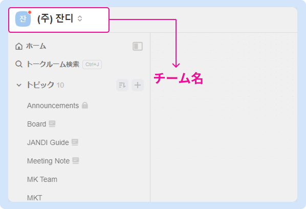 JANDIは、チームの会話と業務を一つの場所で管理できるコラボレーションツールです。初めてご利用の方は、本ガイドで基本的な画面構成をまとめて理解できます。