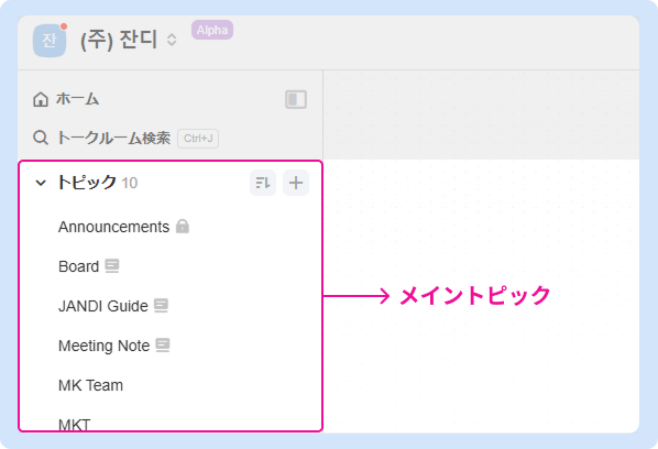 トピックは、メンバーとテーマごとに会話を行うスペースです。