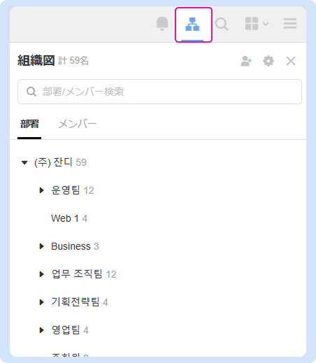 現在参加しているチームのメンバーを部署ごとに確認できます。