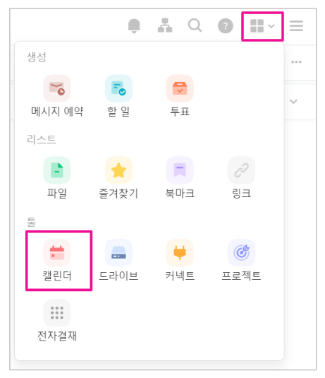 1. 캘린더 앱 메시지나 메뉴를 통해 캘린더에 접속해 주세요.