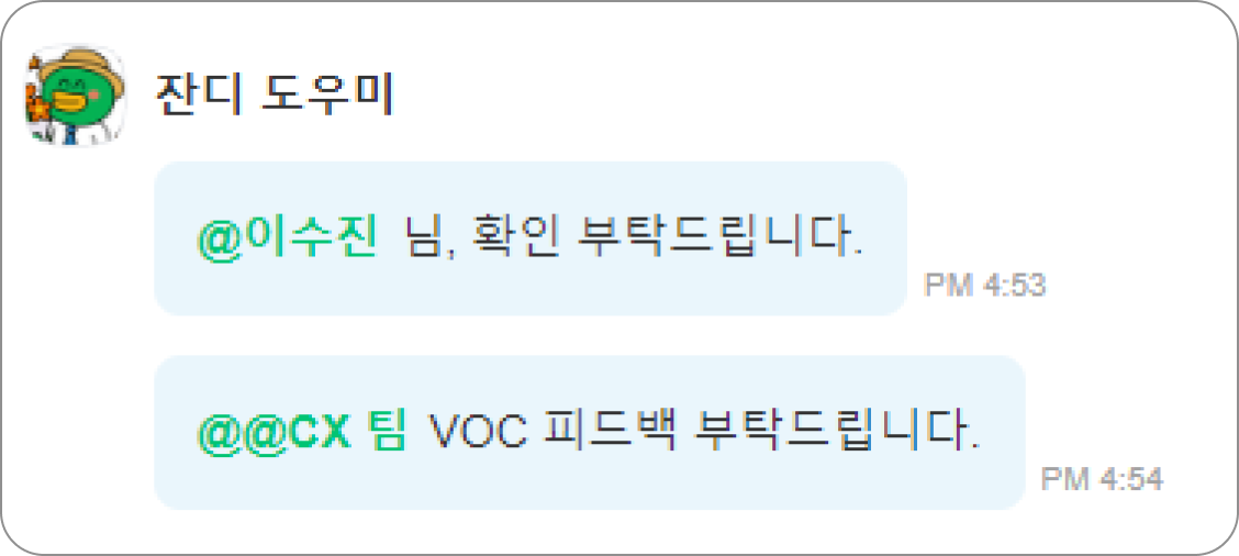 개인 또는 부서/그룹을 직접 지정하여 알림을 보내, 대화에 참여를 유도하는 기능입니다.