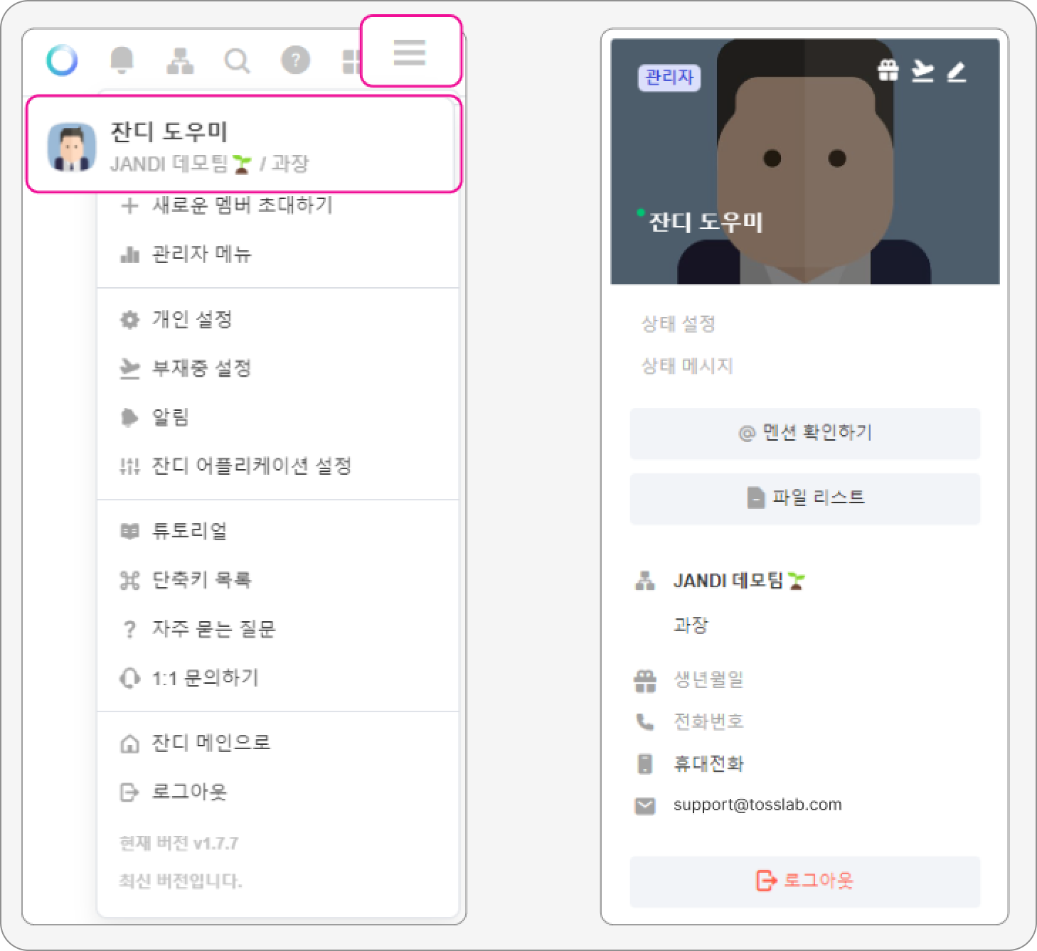 팀 세팅 : 기업 로고 등록, 메시지 수정/삭제 설정