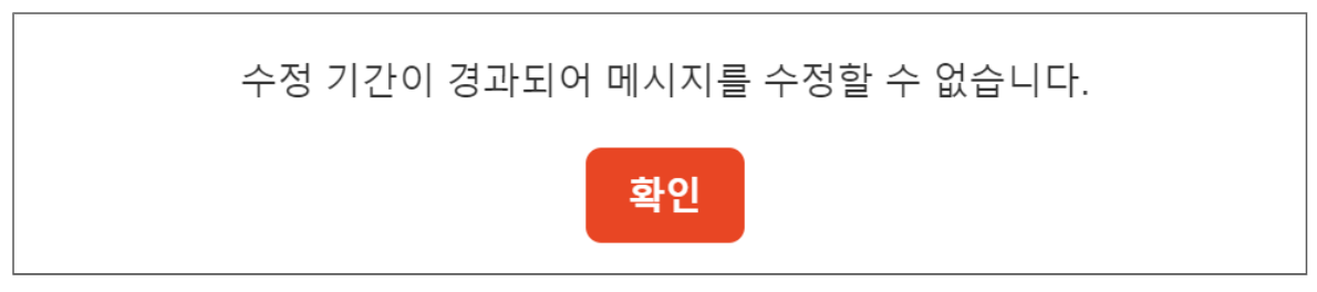 3. 수정 가능 시간 이후 메시지를 수정할 경우, 아래와 같은 문구가 뜨며 수정이 제한됩니다.