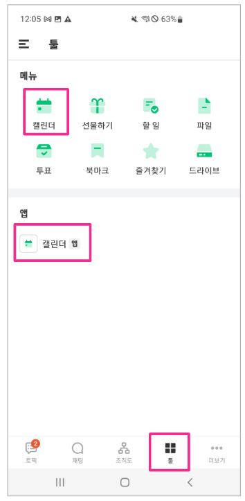 잔디 계정에 로그인이 된 상태에서만 메뉴 or 앱을 통해 캘린더 접속이 가능합니다.
