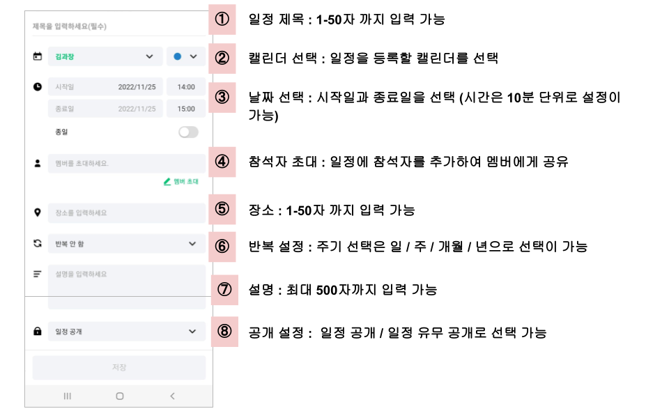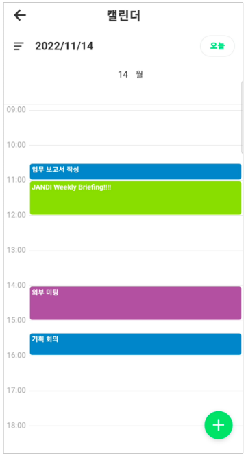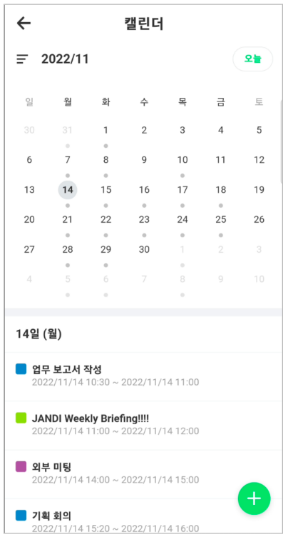각 기능은 PC 잔디 캘린더와 동일합니다.