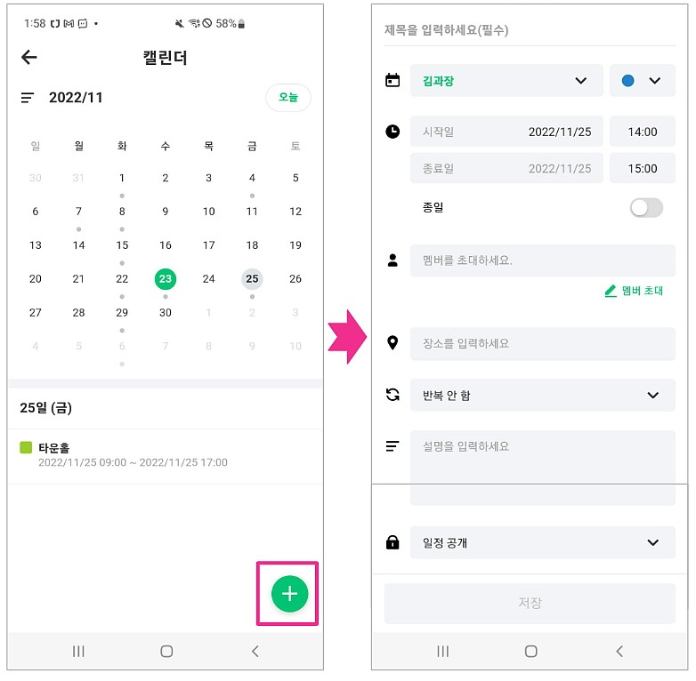 원하는 보기 타입을 선택해서 개인 일정을 확인할 수 있습니다.