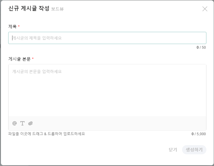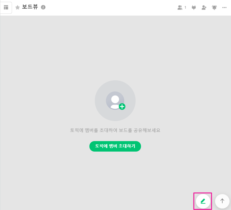 3. 생성된 보드뷰 토픽방 우측 하단에 연필 모양 아이콘을 클릭해 신규 게시글을 작성할 수 있습니다.