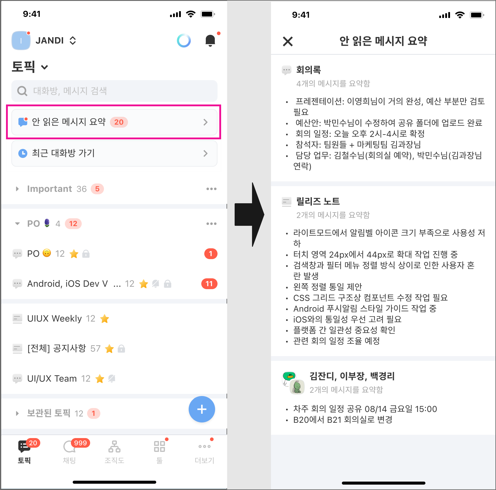 대화방(토픽&채팅) 요약