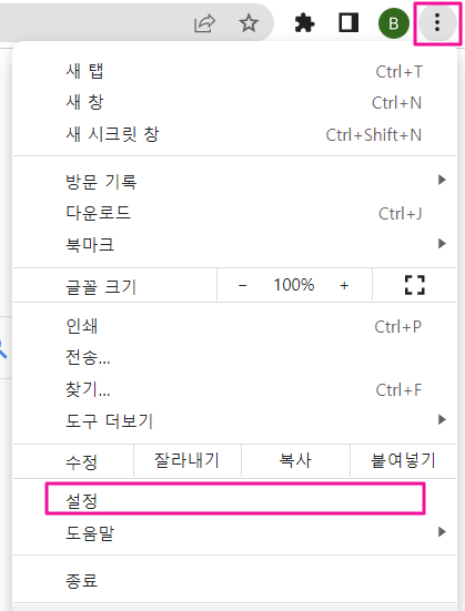 1. 크롬 우측 상단의 옵션 아이콘을 선택해주세요.