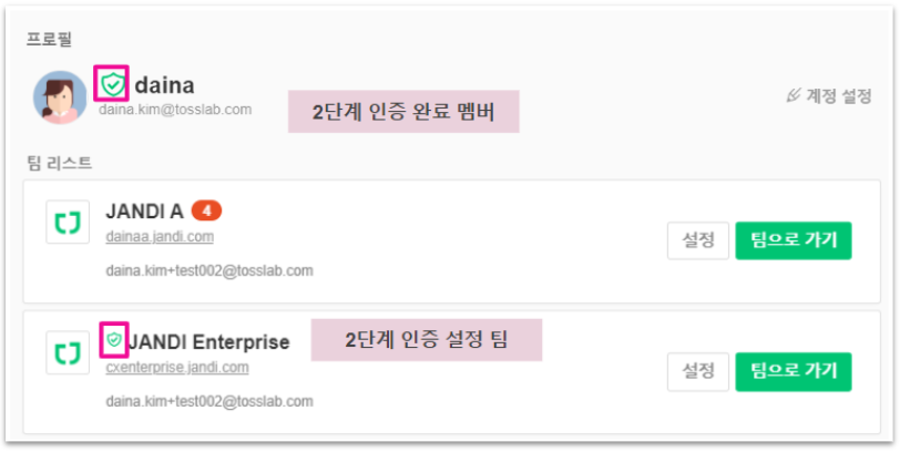 cf. 팀별로 2단계 인증(2FA)을 적용할 수 있나요?
