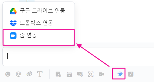 연동 아이콘을 클릭하시면 Zoom을 통한 화상회의 시작이 가능합니다.