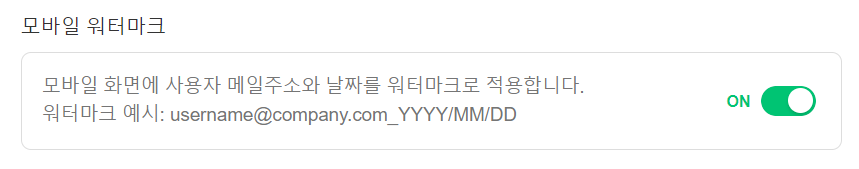 모바일 화면에 사용자 메일주소와 날짜를 워터마크로 설정할 수 있습니다.